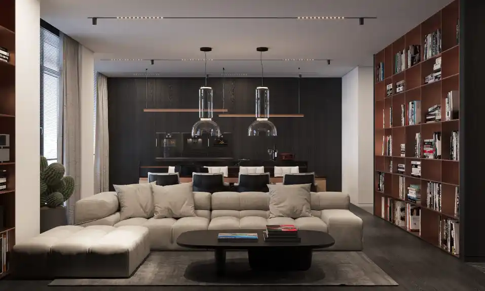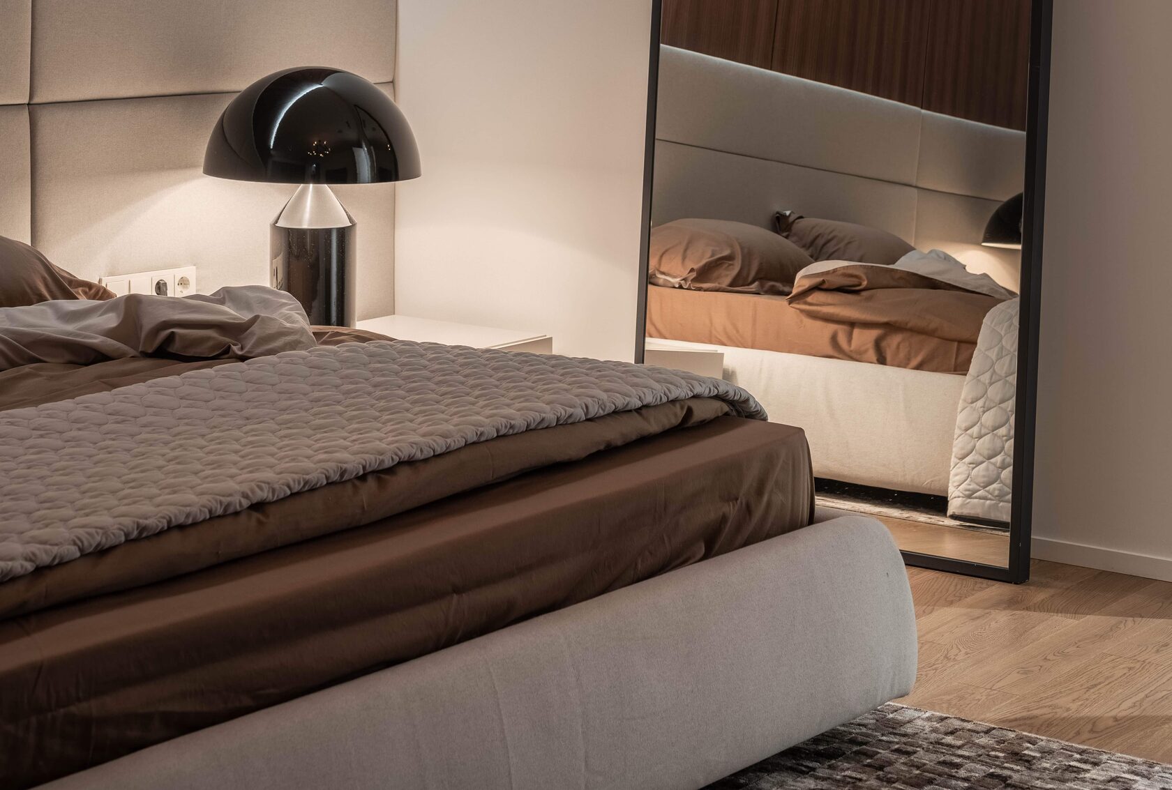 Situated in the vibrant Obolon district of Kyiv, this apartment offers a stylish and comfortable living space with breathtaking views of the Dnieper River. The interior is designed with a modern aesthetic, featuring open spaces, high ceilings, and large windows that allow natural light to pour in. The color palette is dominated by soft neutrals, creating a calm and inviting atmosphere. The apartment's location provides easy access to local amenities while offering a peaceful retreat from the busy city.