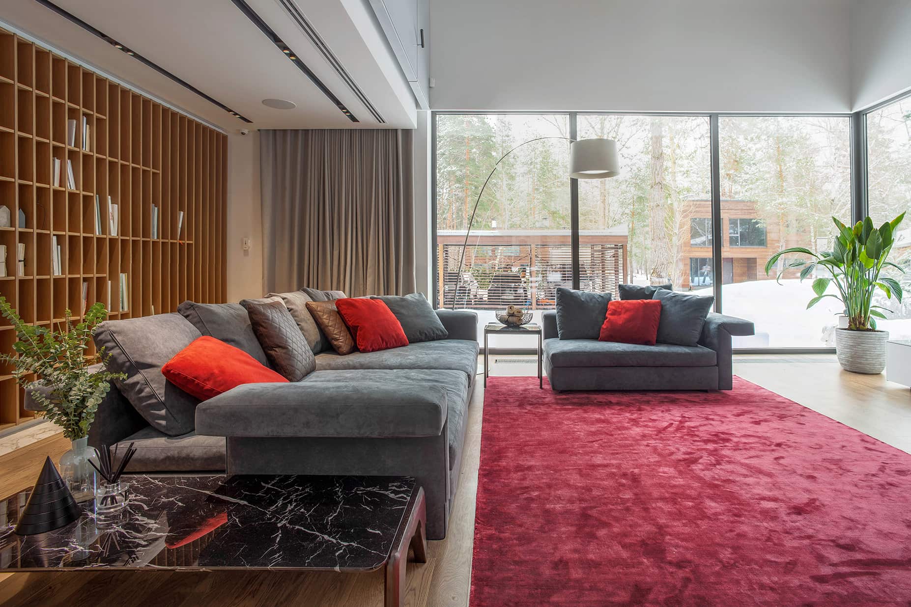 Nestled by the shores of a tranquil lake, this modern house offers a perfect escape from the hustle and bustle of Kyiv. The design emphasizes connection with nature, with large windows and open spaces that provide stunning views of the water. The interior is decorated in a minimalist style, with a focus on natural materials and neutral colors. The outdoor living area, complete with a deck and private dock, allows residents to fully embrace the serene surroundings.